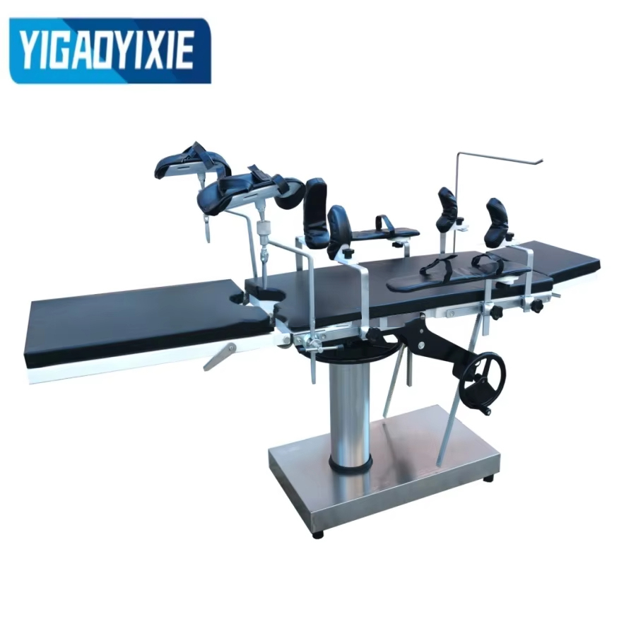 YGS3002A طاولة العمليات العامة عبارة عن جهاز طبي متطور مصمم لدعم جسم المريض أثناء الجراحة ويستخدم على نطاق واسع في العمليات الجراحية الروتينية المختلفة. تتكون طاولة العمليات من اللوح الأمامي، واللوح الخلفي، ولوح الخصر، ولوح الورك، ولوح الأرجل المتكامل. لديها هيكل مدمج ويمكن أن توفر الدعم الشامل. يتم رفع السرير وخفضه من خلال نظام العجلة والمحور الذي يتم تشغيله بواسطة برغي دوار كبير. عملية الضبط اليدوي بسيطة ومستقرة، مما يضمن الاستخدام العادي حتى بدون الطاقة. يعتمد رفع اللوح الخلفي وجسر الخصر على آلية نقل التروس الدودية لضمان التعديل الدقيق والسلس، بينما تم تصميم اللوح الأمامي بقفل حلزوني ويتم التحكم في لوح الساق بواسطة آلية السقاطة، وهي مريحة وسريعة التعديل لضمان أن المريض في أفضل وضع جراحي. إن هيكل القاعدة والعمود لطاولة العمليات مصنوعان من الفولاذ المقاوم للصدأ، والذي يتمتع بمقاومة ممتازة للتآكل ومقاومة الأكسدة، مما يضمن بقاءه متينًا وسهل التنظيف بعد الاستخدام طويل الأمد. يركز التصميم العام على السلامة والاستقرار، مما يوفر للأطباء منصة تشغيل مستقرة لضمان راحة وسلامة المرضى.