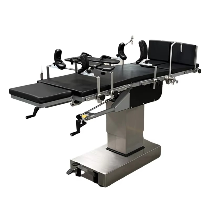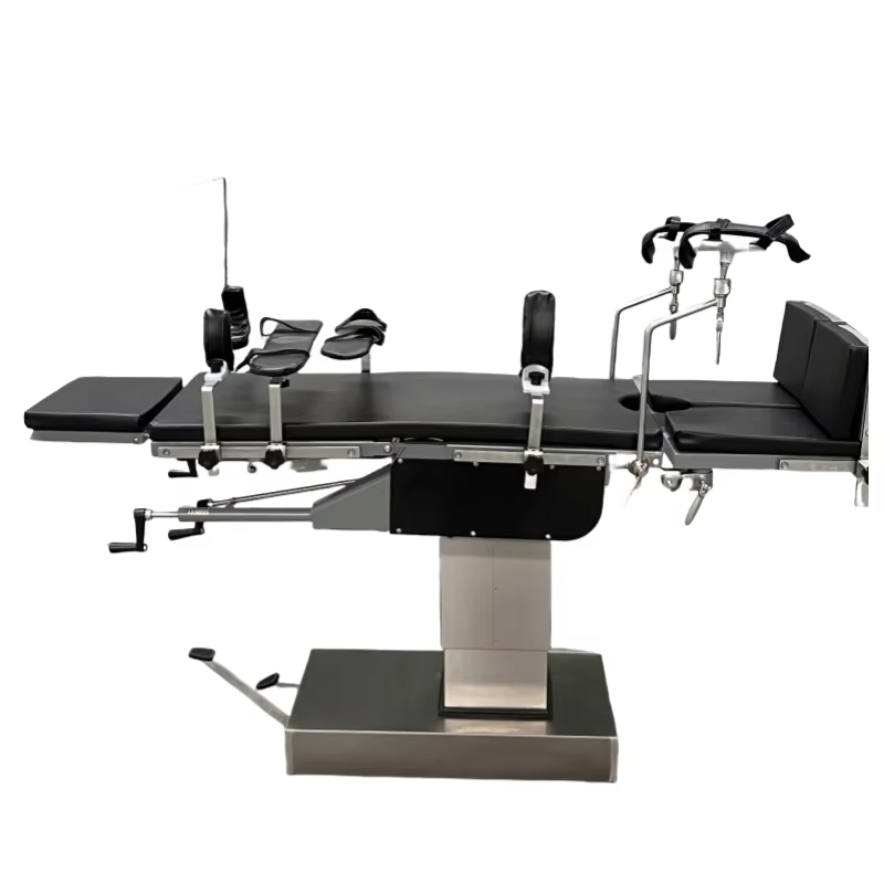 طاولة العمليات الهيدروليكية متعددة الوظائف YGS3008B عبارة عن جهاز طبي عالي الأداء مناسب لمجموعة متنوعة من العمليات الجراحية. يستخدم على نطاق واسع في الرأس والرقبة والصدر والبطن والعجان والأطراف وكذلك في طب التوليد وأمراض النساء وطب العيون وطب الأنف والأذن والحنجرة وجراحة العظام. تتكون طاولة العمليات من اللوح الأمامي، واللوح الخلفي، ولوح الخصر، ولوح الورك، ولوح الساق المقسم. يمكن تعديل كل مكون بدقة. يمكن التحكم في الطي لأعلى ولأسفل، والإمالة الأمامية والخلفية، والإمالة اليسرى واليمنى للوحة الخلفية ولوحة الأرجل عن طريق التروس اليدوية، والتروس الدودية، وأنظمة الرف لضمان استقرار ودقة التشغيل. يتم تشغيل نظام الرفع الهيدروليكي بواسطة مضخة هيدروليكية تعمل بالقدم، وهي سهلة التشغيل ولا تصدر ضوضاء، ويمكن أن تلبي احتياجات تعديل الارتفاع المتكرر. تعتمد طاولة التشغيل سطحًا من الفولاذ الكربوني المطلي بالرش، وهو مقاوم للتآكل ومضاد للأكسدة وسهل التنظيف. أغطية القاعدة والعمود مصنوعة من الفولاذ المقاوم للصدأ، وهو متين ومستقر.