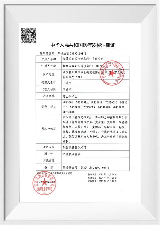 كمؤسسة مرت آيزو 9001، آيزو 13485، آيزو 14001، آيزو 45001 ، وشهادات نظام الإدارة الأخرى، تعتبر شركة شركة جيانغسو ييغاو لتكنولوجيا المعدات الطبية المحدودة جودة المنتج بمثابة شريان الحياة لها. تتوافق جداول التشغيل لدينا بشكل صارم مع معايير CE مما يعني أنها لا تلبي متطلبات السلامة والصحة والبيئة للسوق الأوروبية فحسب، بل تمثل أيضًا المستوى الرائد عالميًا في تصميم المنتجات وتصنيعها.